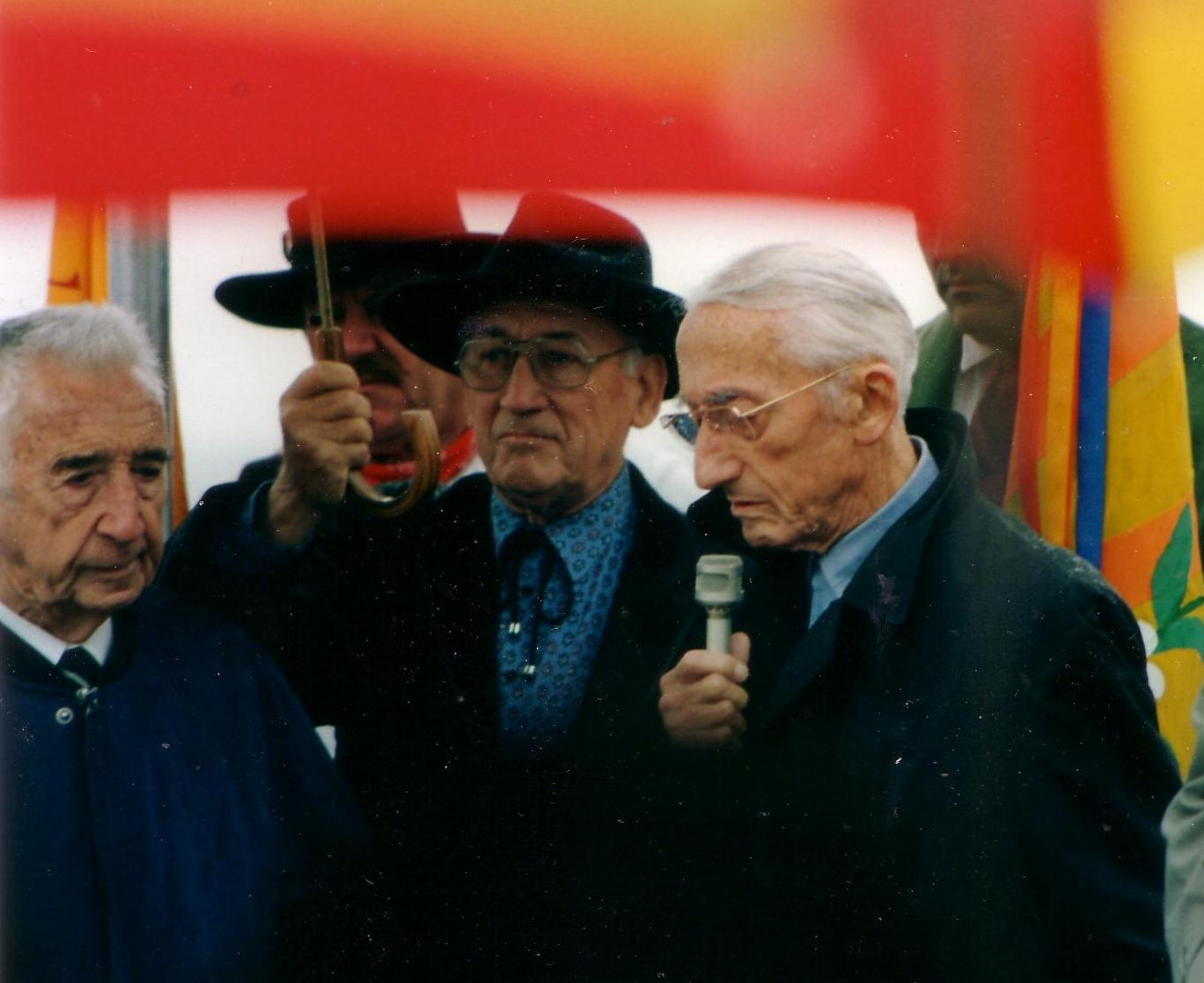 Autre image de cette cérémonie: Barthélemy Rotger prend la parole pour évoquer la vie de Frédéric Dumas. Voisin et ami de la famille Dumas dès avant la guerre, il sera quelques années plus tard le fondateur avec Gérard Loridon de l’association musée Frédéric-Dumas (1994) et son premier président. Coll. Elise Rotger.