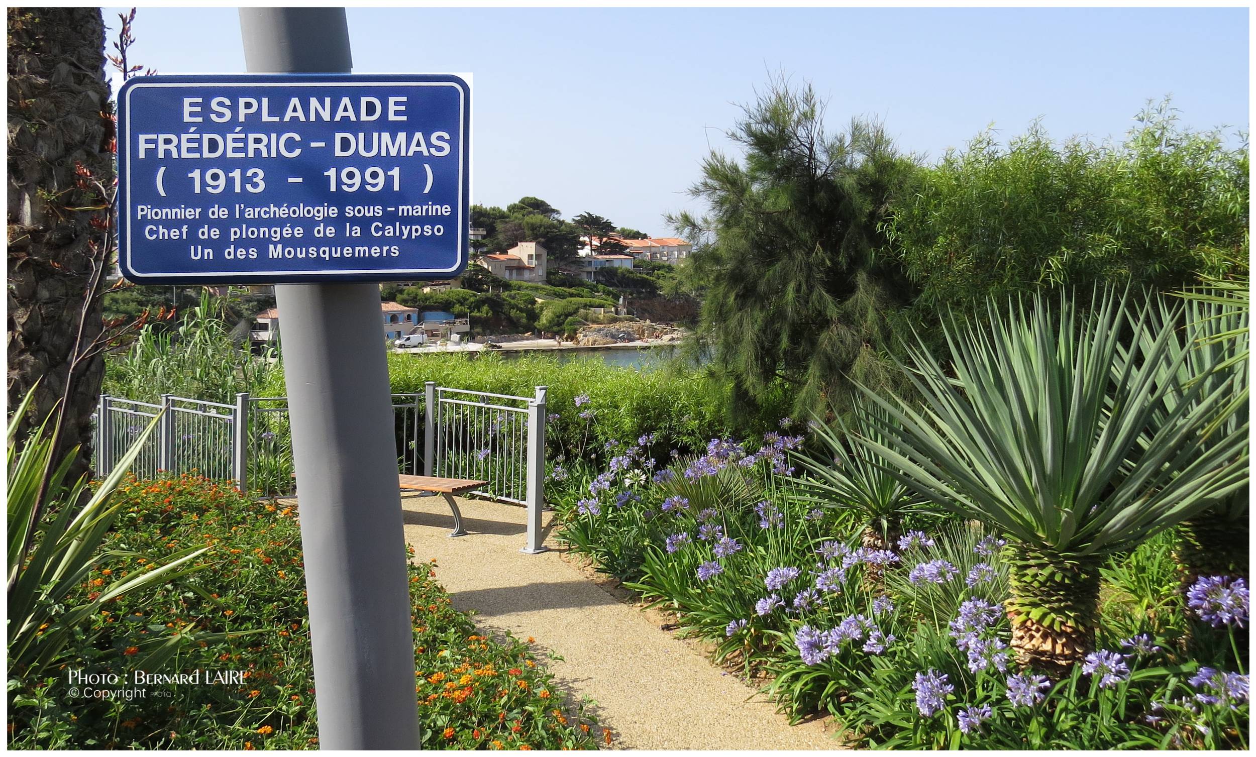 Bonne nouvelle : La plaque « Esplanade Frédéric-Dumas » posée par la ville de Sanary en 1992 à l’initiative de Barthélemy Rotger et qui avait été déposée depuis plus de 4 ans en raison des travaux d’aménagements de la plage de Portissol a été remplacée par une nouvelle avec les mentions suivantes : « Frédéric Dumas, 1913-1991, pionnier de l’archéologie sous-marine, chef de plongée de La Calypso » mentions suggérées par le musée qui  remercie la commune et en particulier le directeur général des services techniques, Jean-Pierre Moulard.