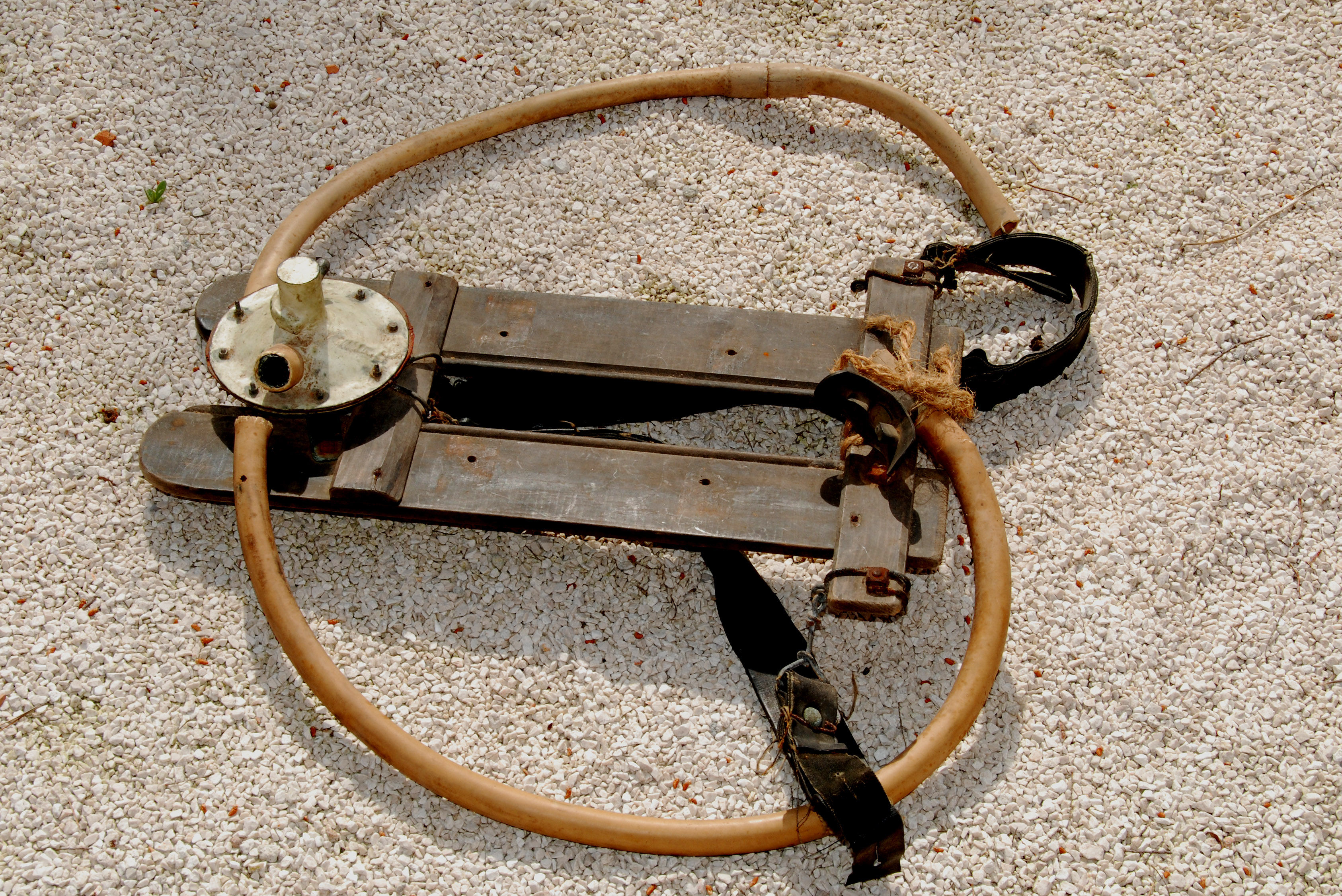 tuyau en caoutchouc tenu courbé avec une corde à