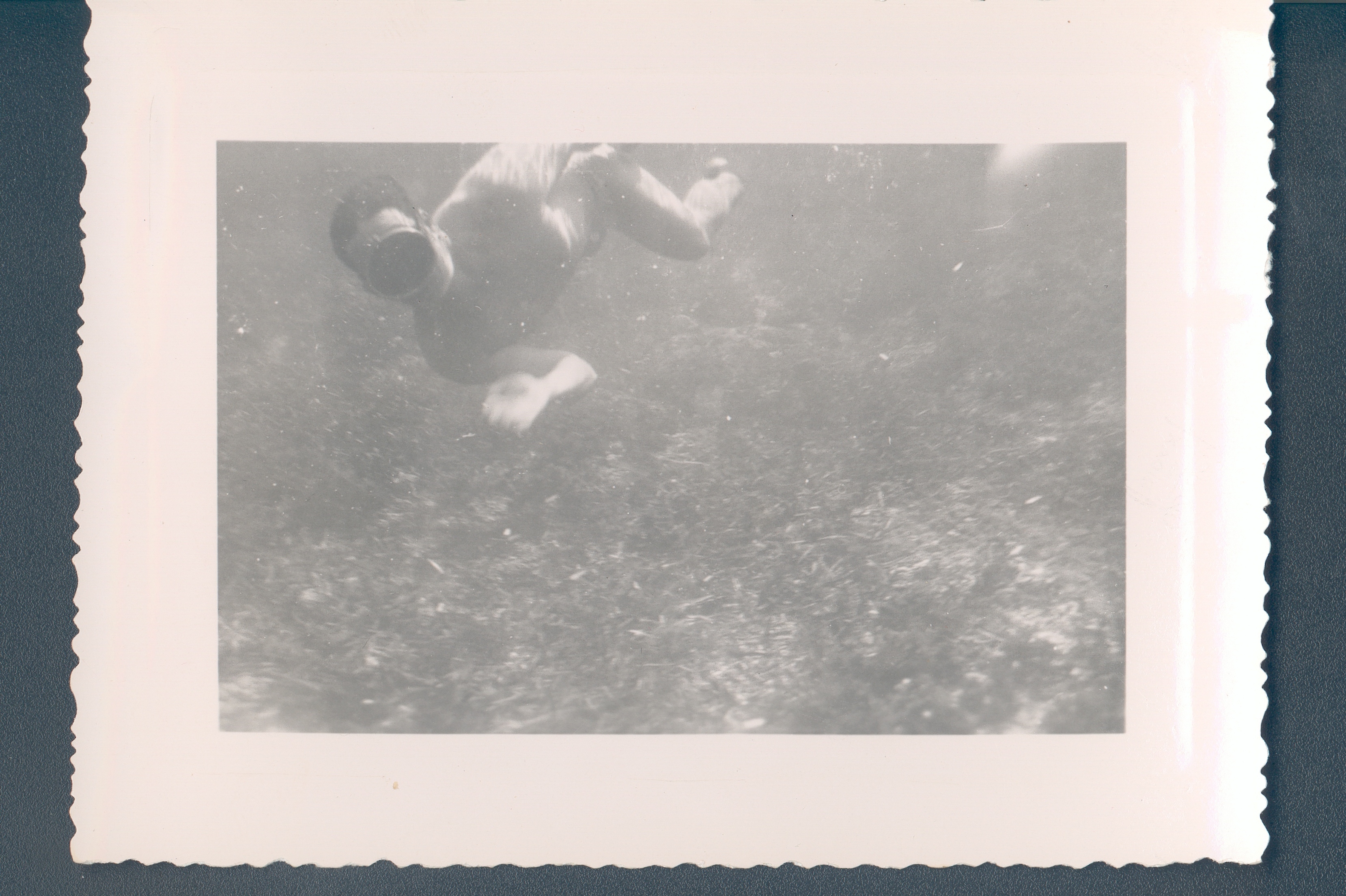 SOUS-MARIN. Voici donc les souvenirs de Pierre Mongeot:« Monsieur Dubois réalisait ses fabrications dans le garage d’une maison particulière située à droite en venant du Colombet et en arrivant au carrefour avec la route d’Ollioules. [villa La Colombine]Ceci, à la Libération, mais il avait certainement commencé avant, dans la mesure où il connaissait Dumas et Cousteau ; sans doute avait-il vu le masque de Dumas.[Colette Béraud nous apprend lors des journées du Patrimoine 2012, que c’est en voyant le seau vitré des pêcheurs d’oursins, que Paul Dubois a l’idée du masque. Paul Dubois arrive à Sanary en 1940, dépose son brevet en décembre 44, lequel sera publié en avril 46. ndlr] J’avais 13 ans en 1943, nous faisions de la plongée et c’est en voyant le masque de Dumas que nous l’avons copié en utilisant des chambres à air de moto.Nous plongions à Portissol de la plage de la Kima du fait que celle de Portissol était fortifiée. La plage était utilisée par les femmes des officiers allemands, mais on nous laissait plonger, nous allions vers la plage de Portissol du fait que les fonds sont moins profonds.J’avais également vu des fusils en bois fabriqués par des amateurs et j’en ai fait un semblable. Plus tard je suis passé au fusil tube métallique (duralumin).S’agissant de Dubois il s’est mis plus tard à fabriquer des combinaisons (de couleur bleue)A cette époque l’atelier s’était déplacé dans un local voisin qui était doublé par un magasin de vente où les combinaisons étaient fabriquées sur mesure et où l’on pouvait faire effectuer des retouches ou des modifications.C’est Madame Colette Béraud qui était responsable de cette activité.En 1946, j’ai construit un dériveur Sharpie 9 m2, la peinture m’a été fournie par Georges Sérénon qui était alors représentant d’une maison de peinture de Marseille. Avec ce dériveur j’ai remporté en 1949 le Championnat de France Juniors en solitaire.Francis Pihan de La Forest, avec sa barquette marseillaise (qu’on appelle maintenant plus généralement « pointu ») et Georges Sérénon allaient plonger sur un site, près de la Tourelle des Magnons, au large du Rouveau. J’ai eu le bonheur de participer à quelques unes de ces plongées, par petits fonds, en apnée, car je n’avais pas leur capacité et par sécurité il m’était interdit d’utiliser leur équipement : ils plongeaient avec un « narguilé ».[Nous consacrerons un prochain article à Georges Sérénon. ndlr] Avec un ami nous avons rendu sous-marin un appareil photo en l’installant dans un morceau de chambre à air fermée aux deux extrémités par un verre de diamètre un peu supérieur à celui de la chambre et cerclé par une attache métallique (également utilisée pour le masque) du type en usage pour les colis Sncf. Le tronçon de la chambre à air avait été prélevé sur la partie munie de la valve de gonflage, afin d’augmenter légèrement la pression intérieure.VIRGINIE BOMANS ARTISTE PEINTRE ET SCULPTRICE NOUS PROPOSE UN CROQUIS DU CAISSON REALISE PAR PIERRE MONGEOT ET ROLAND GERINO. L’appareil photo utilisé était un modèle simple, bon marché : boîtier parallélépipède en matière synthétique, objectif fixe, viseur, bouton de déclenchement sur le dessus et molète sur le côté pour le déroulement de la bobine, film 6X9.Sa largeur correspondait au diamètre de la chambre à air. Après plusieurs essais avec mon ami Roland Gérino, nous avons pu enfin réussir quelques photos sous-marines, dont au moins une de chacun de nous deux à petite profondeur pour avoir une lumière suffisante, c’était en 46-47.Il est probable que d’autres modèles moins rustiques avaient déjà été mis au point, mais nous étions heureux d’avoir pu réaliser ce bricolage.Roland Gérino photographié par Pierre Mongeot 1946. Coll. Pierre Mongeot Nous utilisions à ce moment un des premiers masques Squale.Pierre Mongeot photographié par Roland Gérino 1946. Coll. Pierre Mongeot