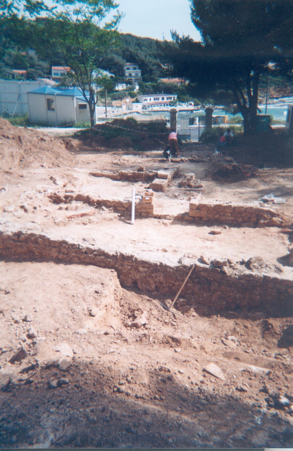 La villa romaine de PortissolOn peut lire dans les ouvrages édités par le Foyer Pierre-Singal sous la direction de Henri Ribot l’étude de cette villa découverte à l’occasion des terrassements réalisés en vue de la construction d’un immeuble « Le Palm Beach » (provençal exotique). Voici la reproduction de photo prises par Gabriel Cardona lorsque venant voir l’avancement de la construction (les époux Cardona ayant réservé un appartement) ils virent ces fouilles. Photos inédites. Portissol, 11 mai 1996. Photo Gabriel Cardona. Portissol, mai 1996. Photo Gabriel Cardona.